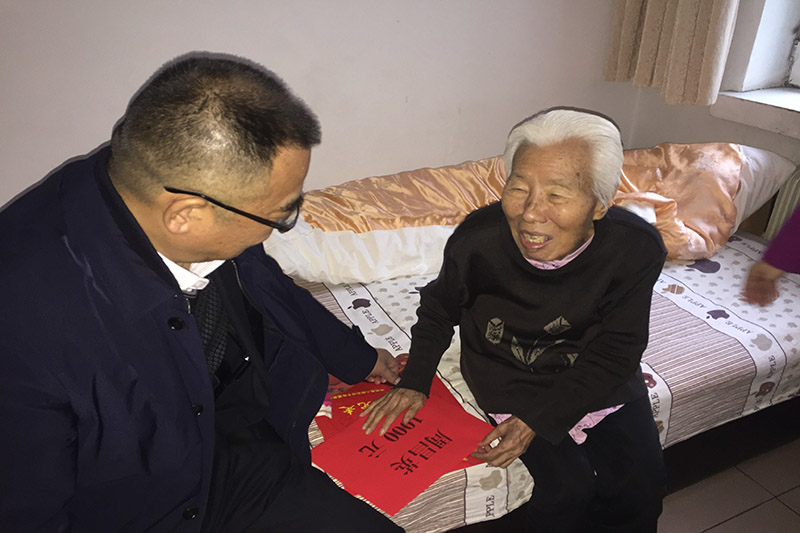 董华祥是原食品厂退休老党员,今年75岁,眼睛患有白内障,一只失明一只黄斑病变几乎失明,右手手腕意外绞伤造成右手肢体三级残疾,2017年10月因意外摔倒造成双手骨折,右臂无法抬起,目前生活基本无法自理。看到董华祥依然坚强乐观的精神状态,师市党委组织部常务副部长王忠利感谢老党员、老骨干、老模范们为国家富强及师市发展所做出的积极贡献,并鼓励她振作精神、自强不息、合理运动,早日康复。