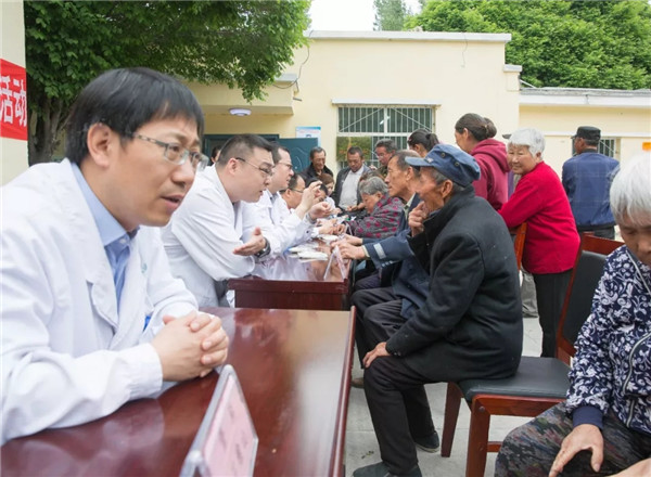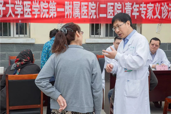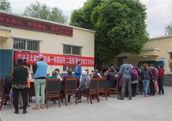 5月13日,驻石河子镇十户窑村“访惠聚”工作队连同该村“民族团结一家亲”结亲单位——供销社、该村“两委”,共同邀请石河子大学医学院第一附属医院青年专家来到石河子镇十户窑村为村民进行义诊。