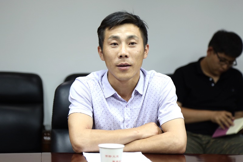 图为:八师134团政工办主任武志高同志交流发言